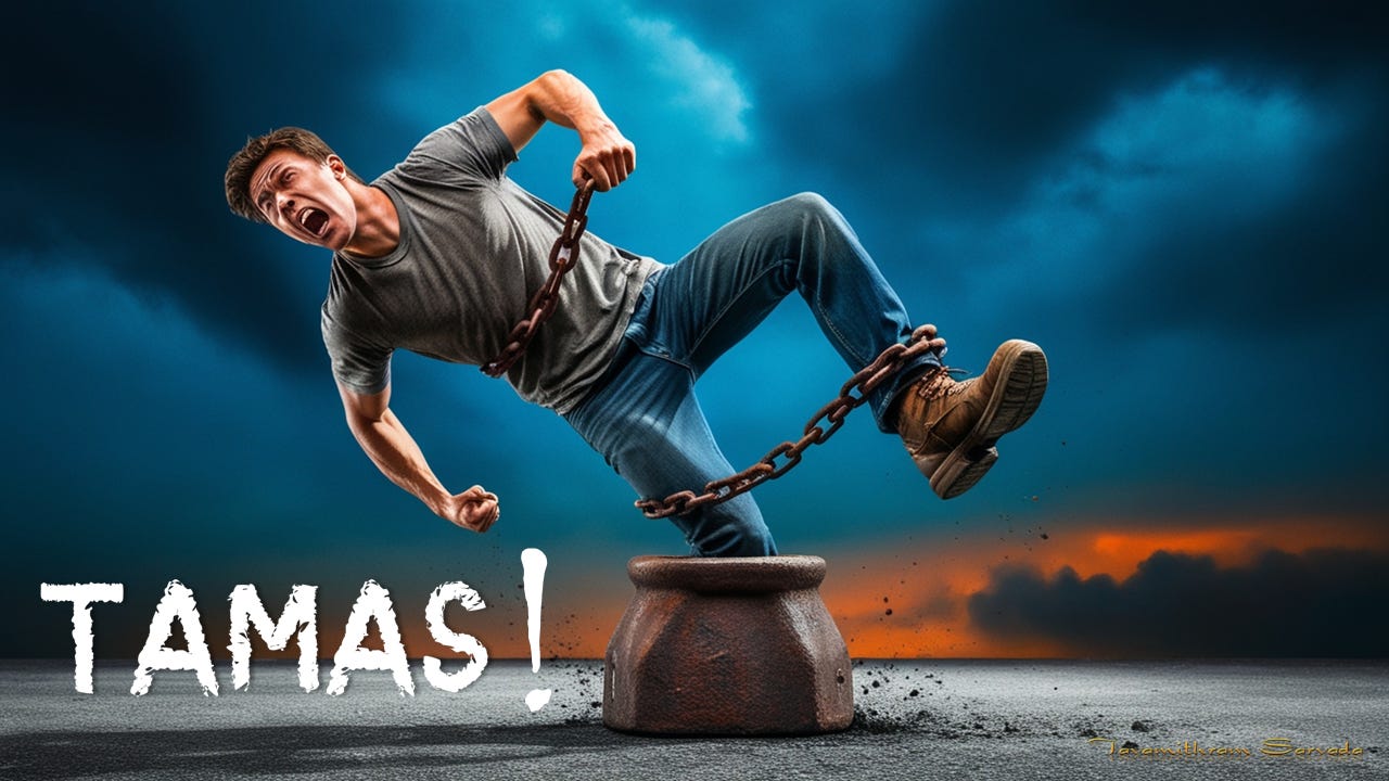 Excessive Tamas is like a heavy weight that chains a person to the ground, preventing any positive change and perpetuating a state of lethargy and inertia. It not only affects one’s behaviour but also distorts one’s ability to rationalise and make sound decisions. A person overwhelmed by Tamas might find themselves stuck in a cycle of inaction and negativity, unable to break free and achieve their true potential.